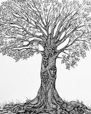 You discover a strange tree with faces embedded in its bark. The many eyes stare at you, and all of the mouths open and speak."There is only one prayer for escaping this forest. You must search for the five herbs and mix them into the Crystal Well ... or be trapped here forever."Thorny brambles snake across the path behind you, blocking your way. Your only available path is south. | Items carried:AxeBronze helmetLeather armorYour options: Take the path to the south. |
