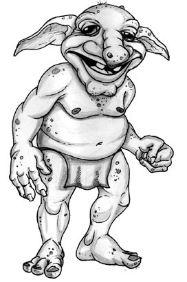 A short, ugly troll stands before you and shouts a warning.