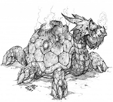 A monstrous Lava Dragon blocks your way. As it sees you, it roars, blasting flames from every volcanic opening, and rushes at you, opening wide its hungry jaws.You have no time to flee. | Items carried:AxeMailLanternBag of goldYour options: Strike hard with your axe. |